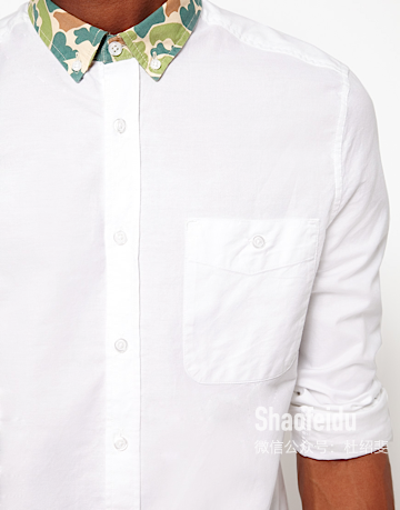 对比领这种领子和身体颜色不同的款式在我看来特别的难看,但是这款迷彩领子和白色身体的对比领,居然取得了一种奇妙的和谐,真是奇怪极了: