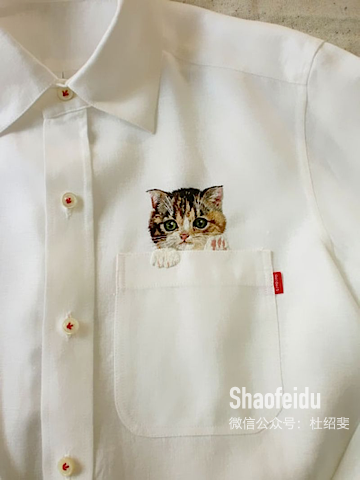 日本的小怪人绣师HirokoKubota在白衬衫左胸贴袋上创作的这一系列超精细猫咪刺绣,不知道迷倒了多少女的心,哥为此买过一件,结果因为太娘只穿过一次你造吗: