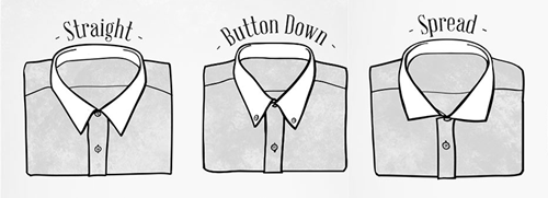 领型是衬衫首先给人呈现的印象,需要好好选择适合自己的领型。如果详细分的话领型可以有几十种之多,要说三天三夜,本着随随便便的精神我们可以粗略列举三种常见的领型:Straight(尖角领|经典领)、Spread(敞角领|温莎领)和ButtonDown(纽扣领),较为推荐的基本款DressShirts领型有两种:Straight和Spread: