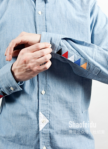 衬衫本身是一种很无趣的服装,款式上很难有更多的创意出现,但这又怎么能难得住这些衣着小怪人们呢,充满想象力的小怪人们开发出出了很多亮眼的细节,比如在袖子处加入彩色几何图形: