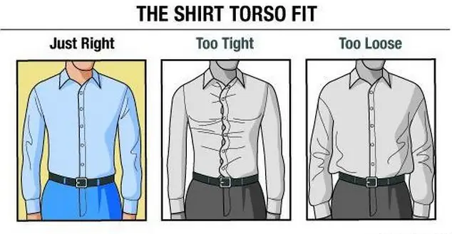 过于宽松:纽扣扣上后,多余的衣服面料会堆积在腹部或者胸骨处,在系上皮带后会造成腰部肥胖的观感。