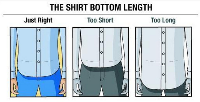 过于长大:衬衫前摆降到胯部,而将衬衫扎入皮带中则会有大量的衣料堆积在腰间,显得臃肿。